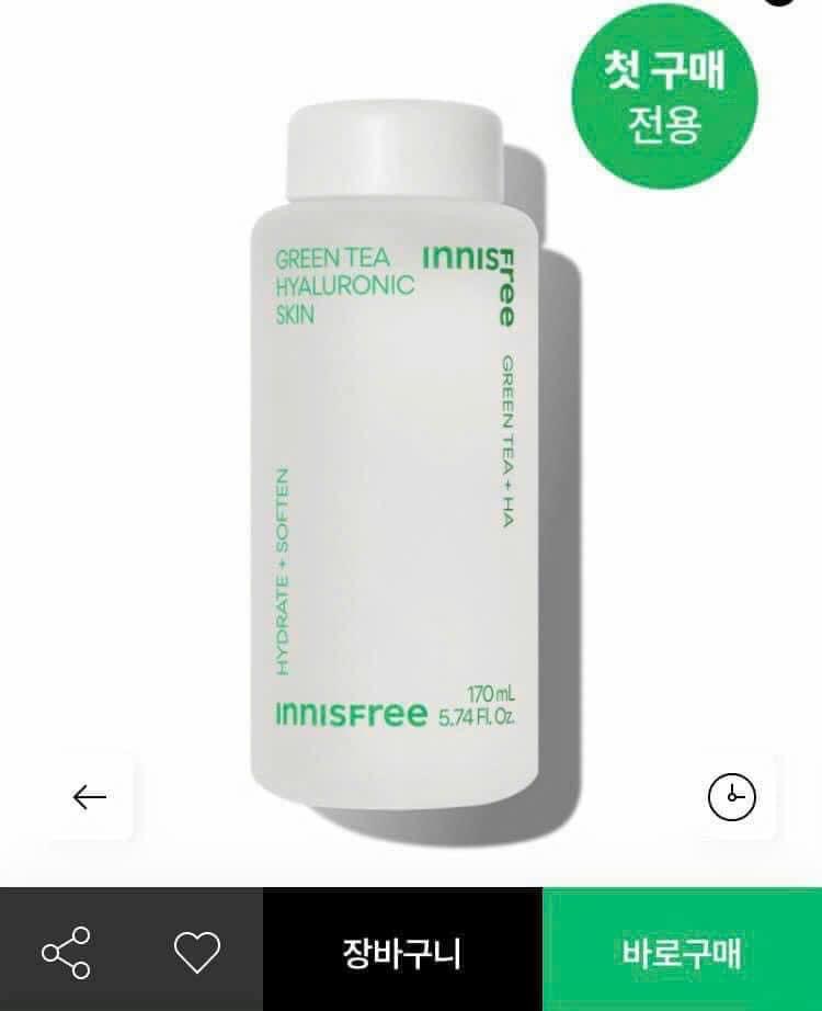 Nước hoa Hồng cấp ẩm innisfree green tea hyaluronic skin 170ml